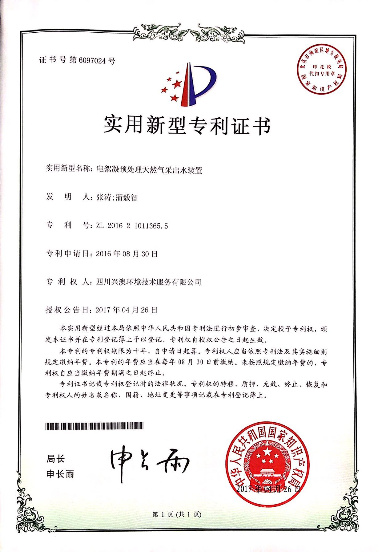 一直以来,公司研发人员都致力于天然气采出水处理工艺及相关设备的研究,研发团队和研发人员经过反复试验,克服研发过程中的重重困难,解决了一个又一个难题,通过调整电絮凝器中的极板的设计,进一步优化产品性能,成功研发出电絮凝预处理天然气采出水装置,并获得国家知识产权局颁发的实用新型专利证书。